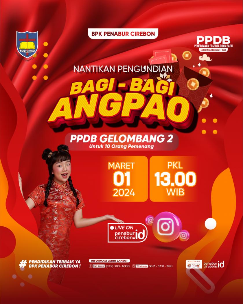 Kami ucapkan kepada seluruh 10 orang calon siswa-siswi yang telah beruntung mendapatkan cashback dari Undian Bagi-Bagi Angpao BPK PENABUR Cirebon di gelombang yang kedua ini. Dan bagi yang belum beruntung, tetap semangat dan jangan berkecil hati.